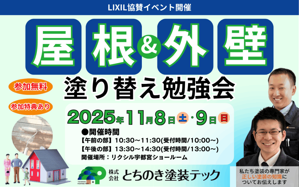 11/8(土)・9日(日)【屋根外壁 塗り替え勉強会】開催します!