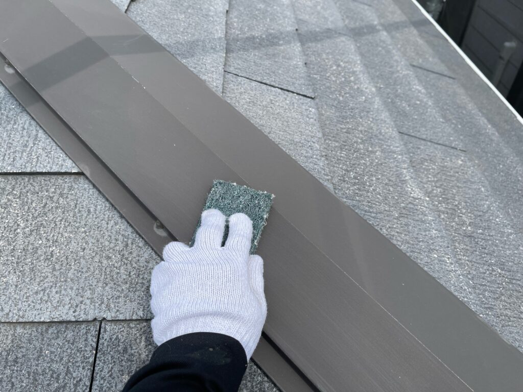 屋根材のひび割れ補修、釘の打ち直し、板金部のケレン(サビ落とし)などを行います。