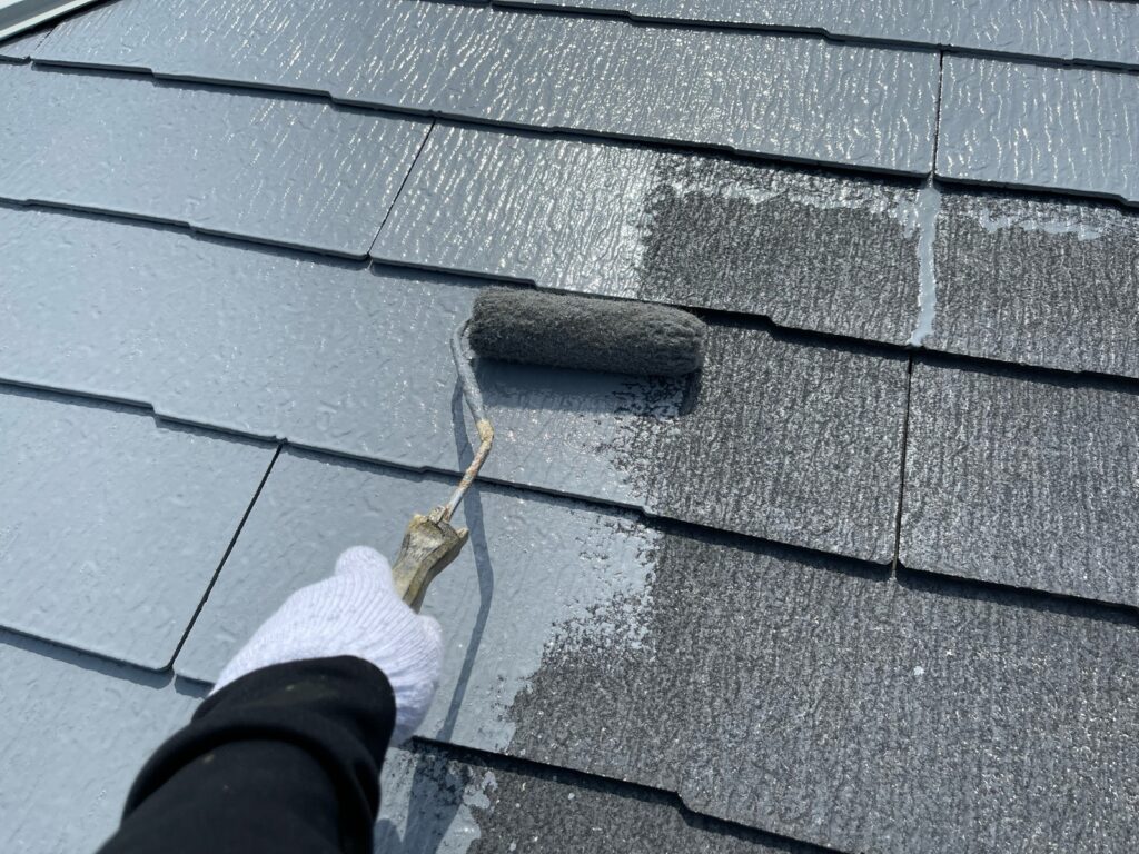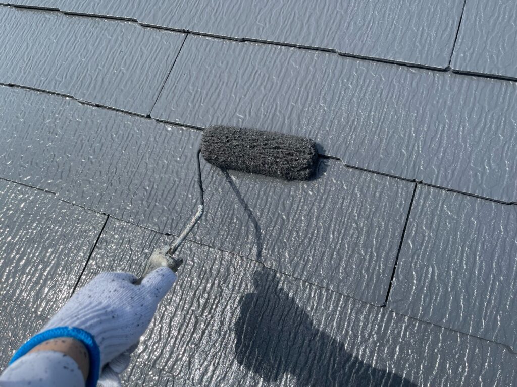 また、繰り返しになりますが屋根の傷みが激しい場合には下塗り塗料を2回塗布します。というのも、傷みが激しいと屋根材が塗料を吸収してしまい、塗膜がしっかりと形成されないんです。艶が出る(=塗膜が形成される)ようもう一度塗装します。