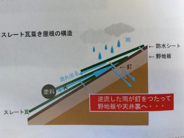 …というのも、瓦のわずかな隙間を塗料でふさいでしまうと、雨水の逃げ道がなくなり、溜まった水が逆流して上へと押し上げられてしまうことがあります。