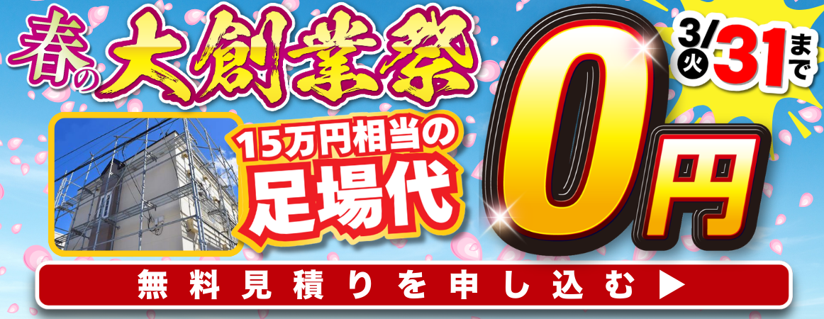 春の大創業祭スタート!足場代0円・金利0%・チーズケーキ特典付き♪