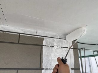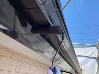 軒天の塗装です。中塗り・上塗りの2回塗りを行っています。