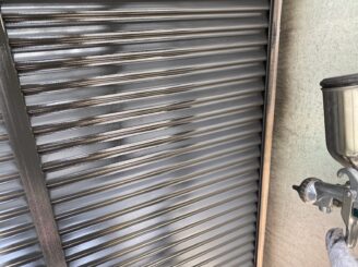雨戸の塗装です。中塗り・上塗りの2回塗りを行っています。