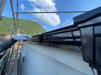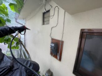 外壁の高圧洗浄です。付帯部なども一緒に洗浄しています。
