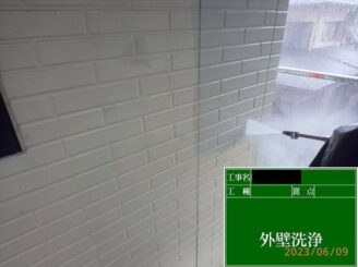 外壁の高圧洗浄です。付帯部なども一緒に洗浄しています。