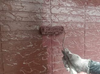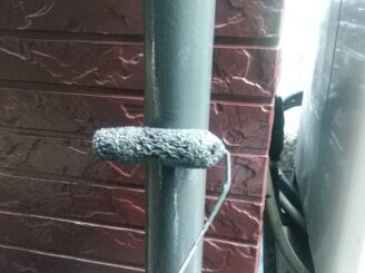 外壁の中塗り・上塗りです。お色は8210.チョコレートブラウンです。