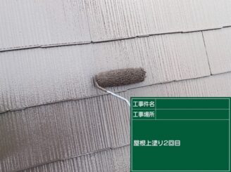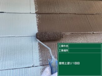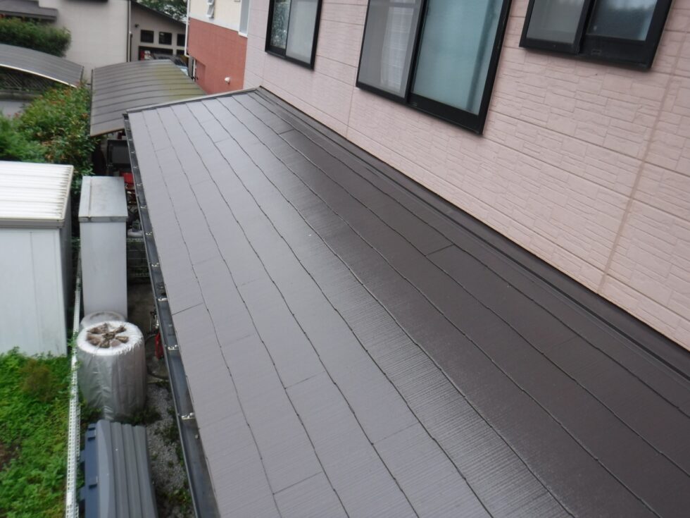 下屋根上塗完了写真です。大屋根同様、こちらも社内検査でくまなくチェックをさせていただきました。