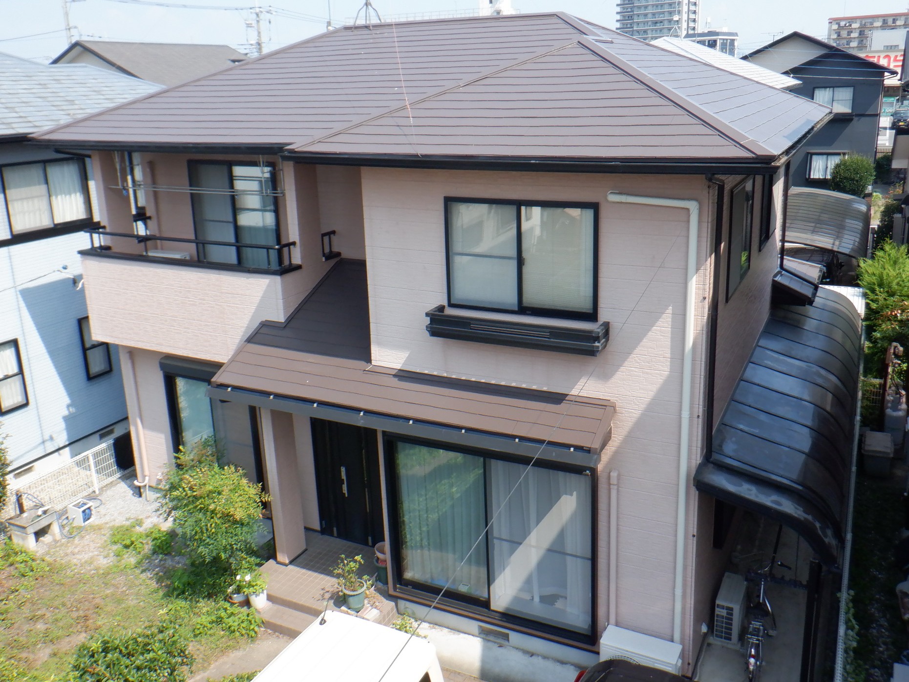 使用色はこちら→屋根:9113.ラセットブラウン|施工前は色褪せやムラが出ていた部分がありましたが、艶のある綺麗な屋根になりました。