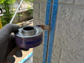 既存シーリングを撤去し、接着をよくするためにプライマーを塗布していきます。
