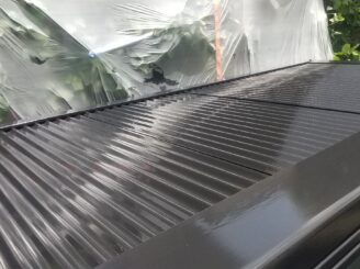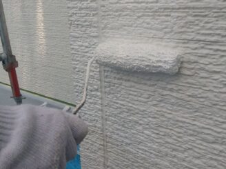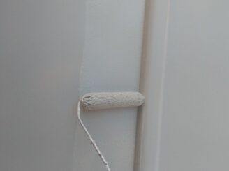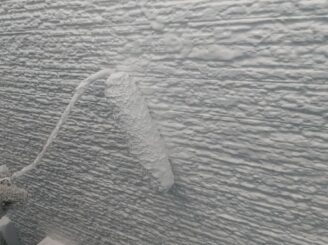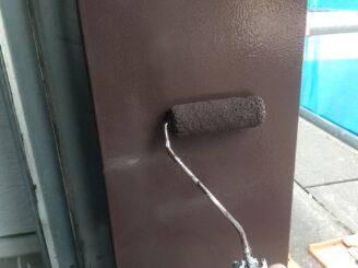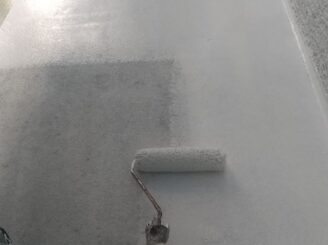 庇の塗装です。中塗り・上塗りの2回塗りを行っています。