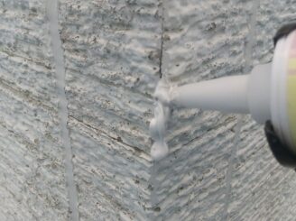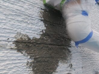 新しいシーリングを充填し、シーリング施工後の膨れや剝がれ防止のためにヘラで均し て内部の空気を押し出していきます。