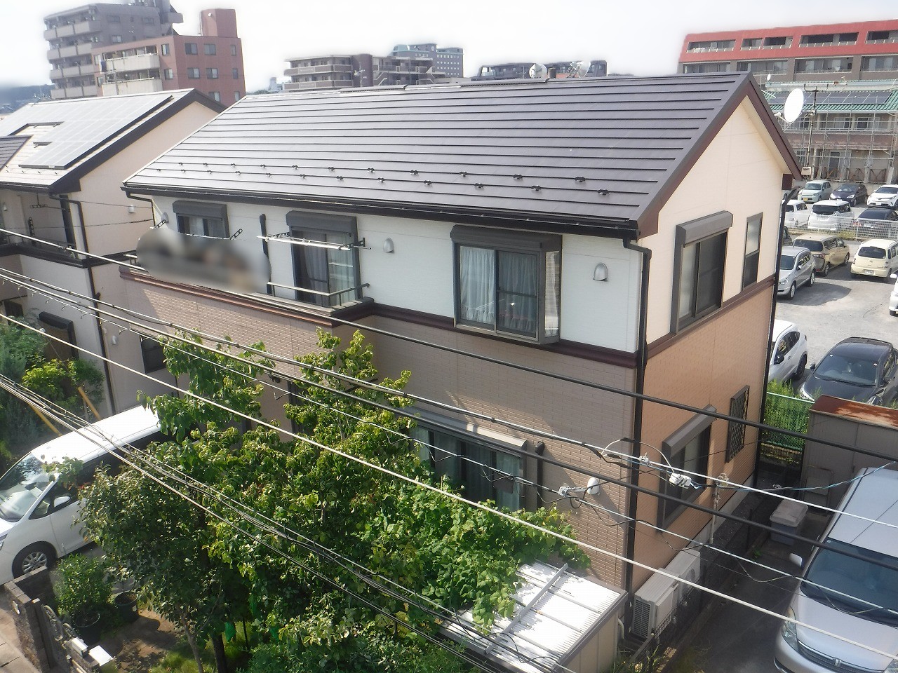 屋根・外壁ともに数年前に塗装をされていましたが、今回はノンアスベスト瓦の一部が劣化し、抜け落ちてしまう事態となったため、屋根カバー工法での施工を行いました。