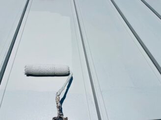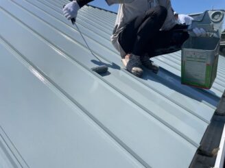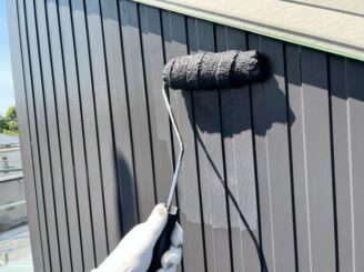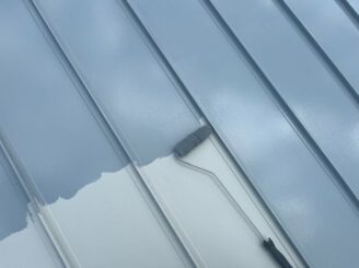 屋根塗装の中塗りです。使用色は9110.クレタグレーです。
