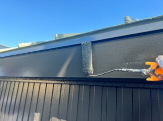 破風の塗装です。中塗り・上塗りの2回塗りを行っています。
