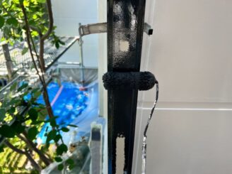 雨樋の塗装です。中塗り・上塗りの2回塗りを行っています。