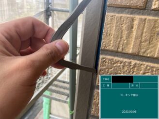 既存シーリングを撤去し、接着をよくするためにプライマーを塗布していきます。
