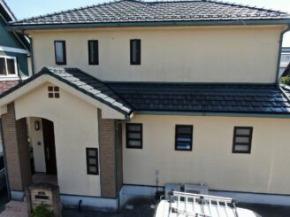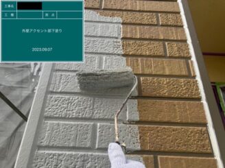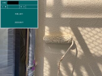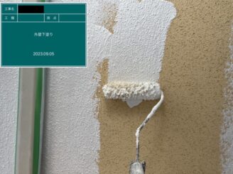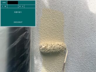 外壁塗装の中塗りです。使用色は8087.スムースクリームです。