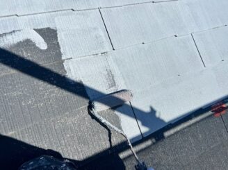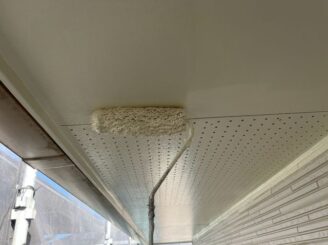 軒天塗装です。中塗り・上塗りの2回塗りを行っています。