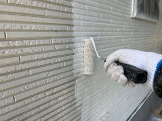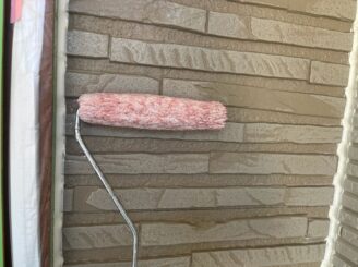 外壁塗装の中塗りです。使用色は9020.エクリュです。