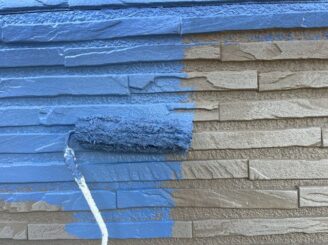 外壁塗装の中塗りです。使用色は8108.マウンテンブルーです。