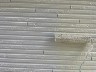 外壁塗装の上塗りです。中塗りと同じく使用色は9020.エクリュです。