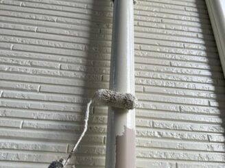 雨樋塗装です。中塗り・上塗りの2回塗りを行っています。