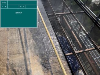 旧塗膜や藻・苔などの汚れを除去し、塗膜の密着性を向上させます。