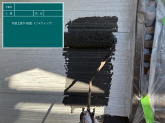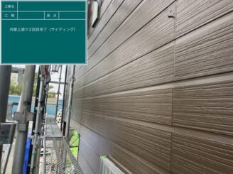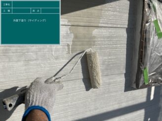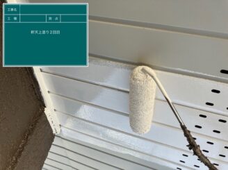 軒天塗装です。中塗り・上塗りの2回塗りを行っています。