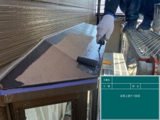 出窓塗装です。中塗り・上塗りの2回塗りを行っています。