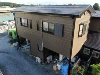 使用色はこちら→屋根:9114.キャビアブラウン|外壁:8074.アイアンバーグ | 屋根と外壁をブラウンに塗装したことで統一感のあるシックなお家に仕上がりました!