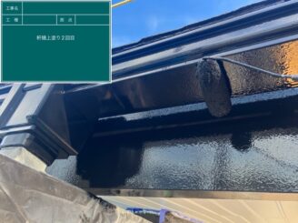軒樋塗装です。中塗り・上塗りの2回塗りを行っています。